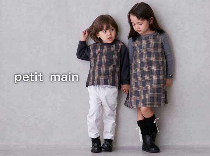 「petit main」(プティマイン)はトレンドファッションに子どもらしさをプラスした、デイリープライスで楽しめるガールズ&ボーイズブランド。