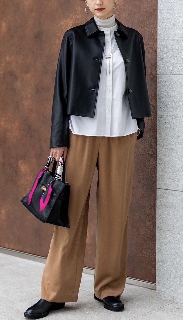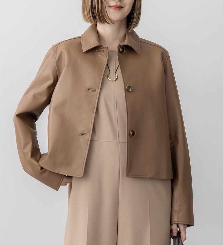 ステンカラーでコンパクトなレングスが今年らしい、柔らかな手触りのレザージャケット。