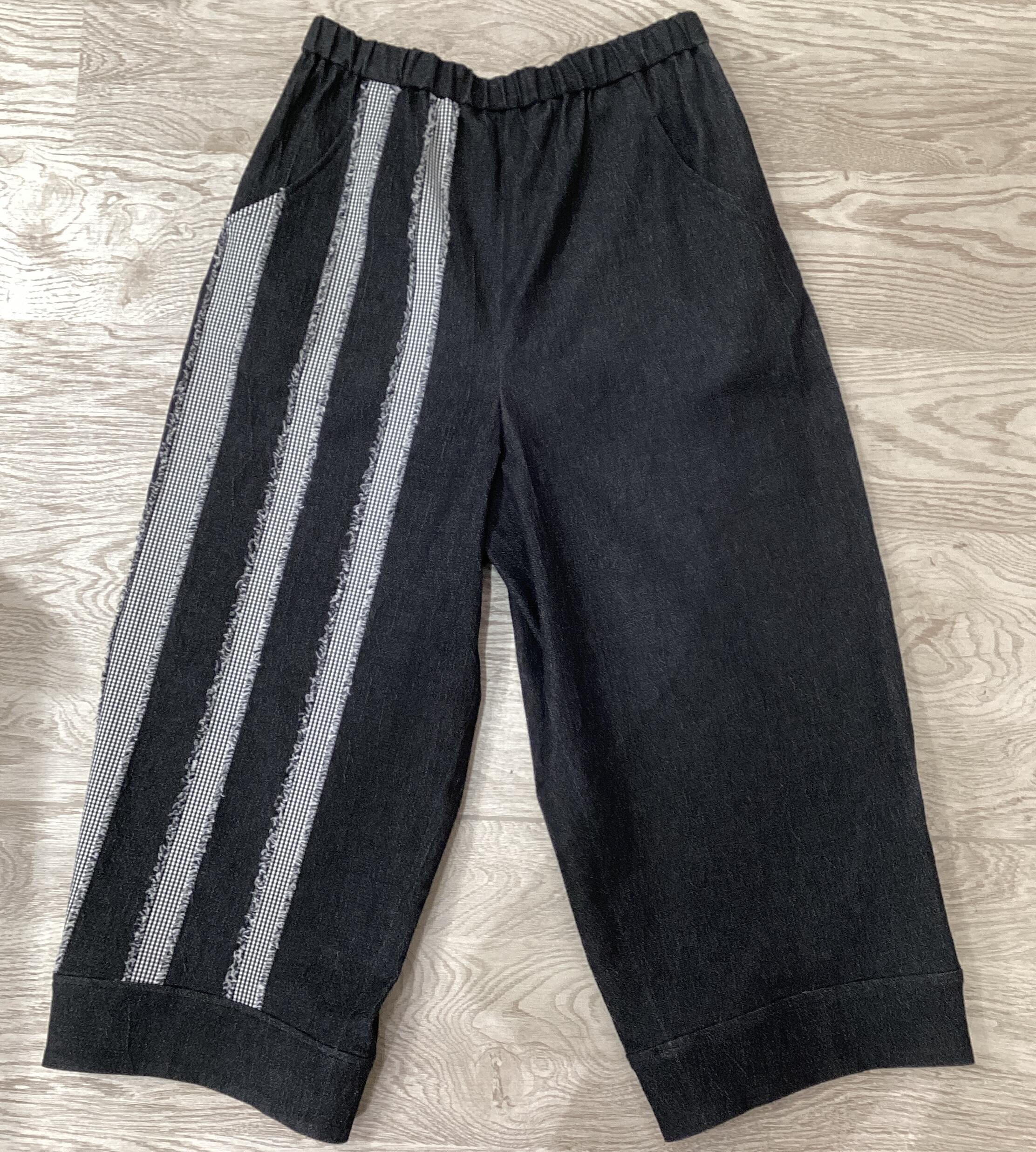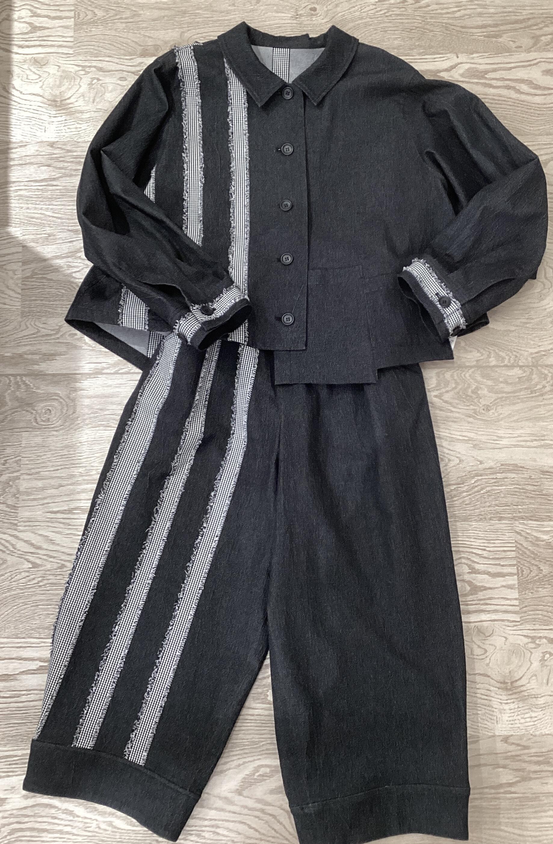 ライン部分は一見切り替えの様に見えますが実際には一枚続きで織られております。