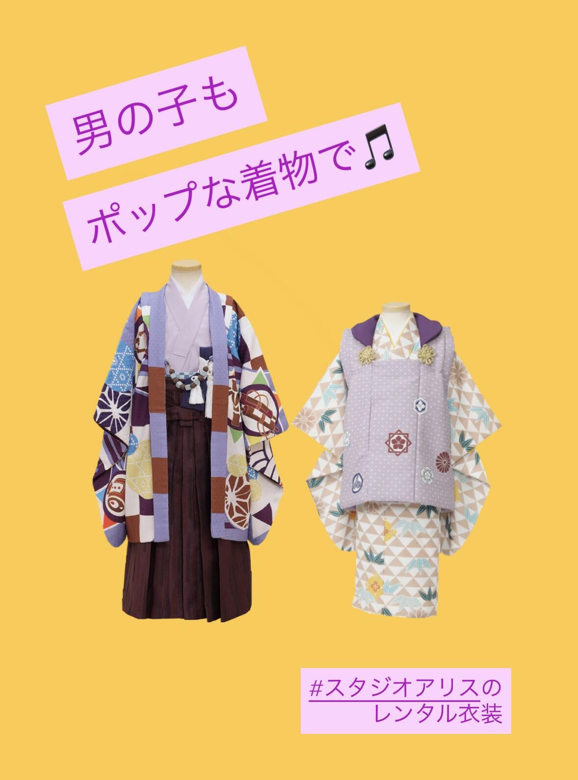 ポップな雰囲気のお着物は兄弟で合わせてもかわいいです♪