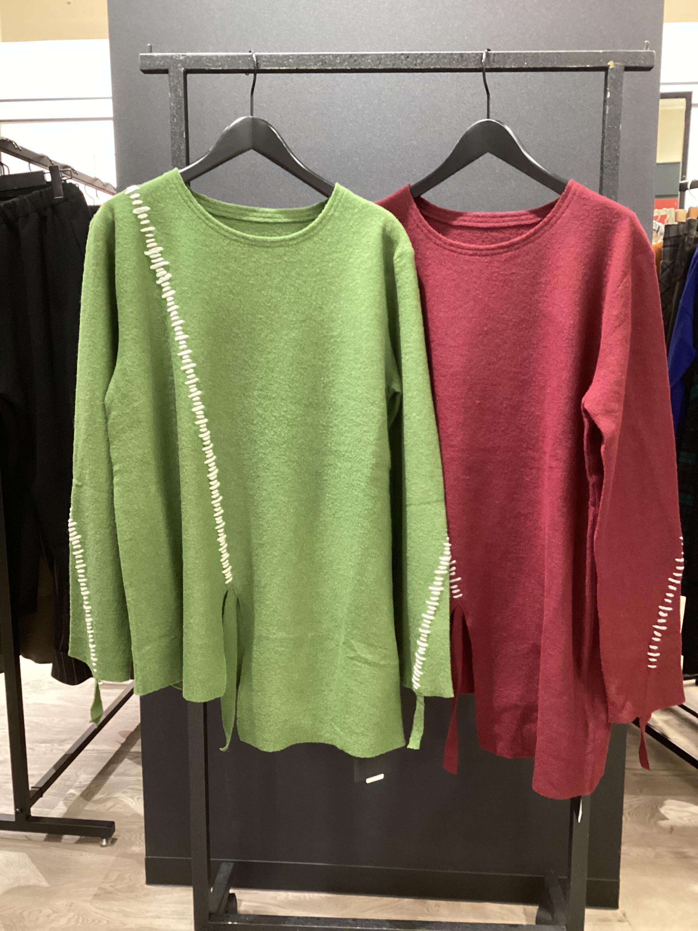 丸首なので中にハイネックのインナーを入れると更に暖かくなります♪