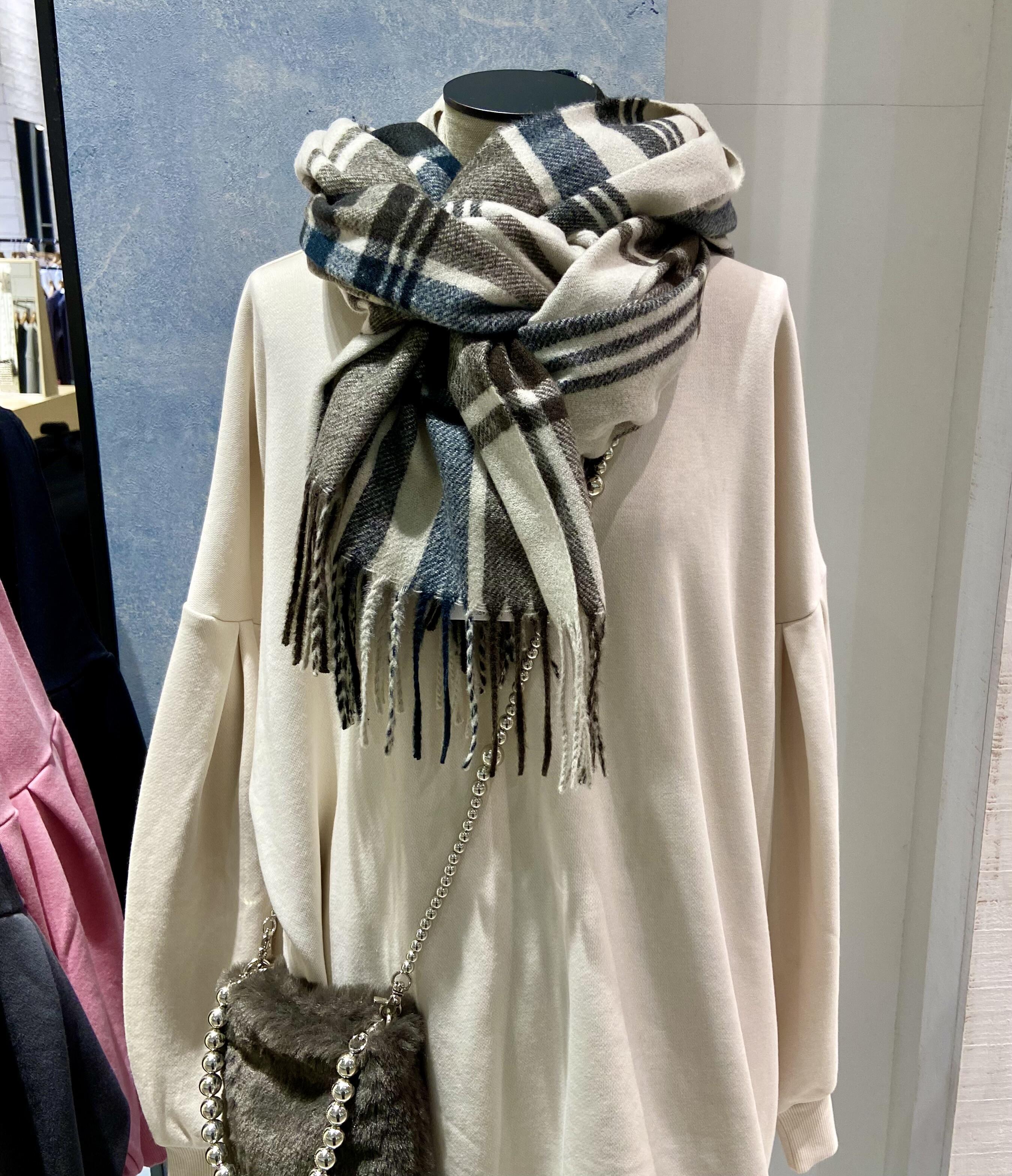 これからの寒い季節にはアウターの上に着ていただくのもおすすめです◎