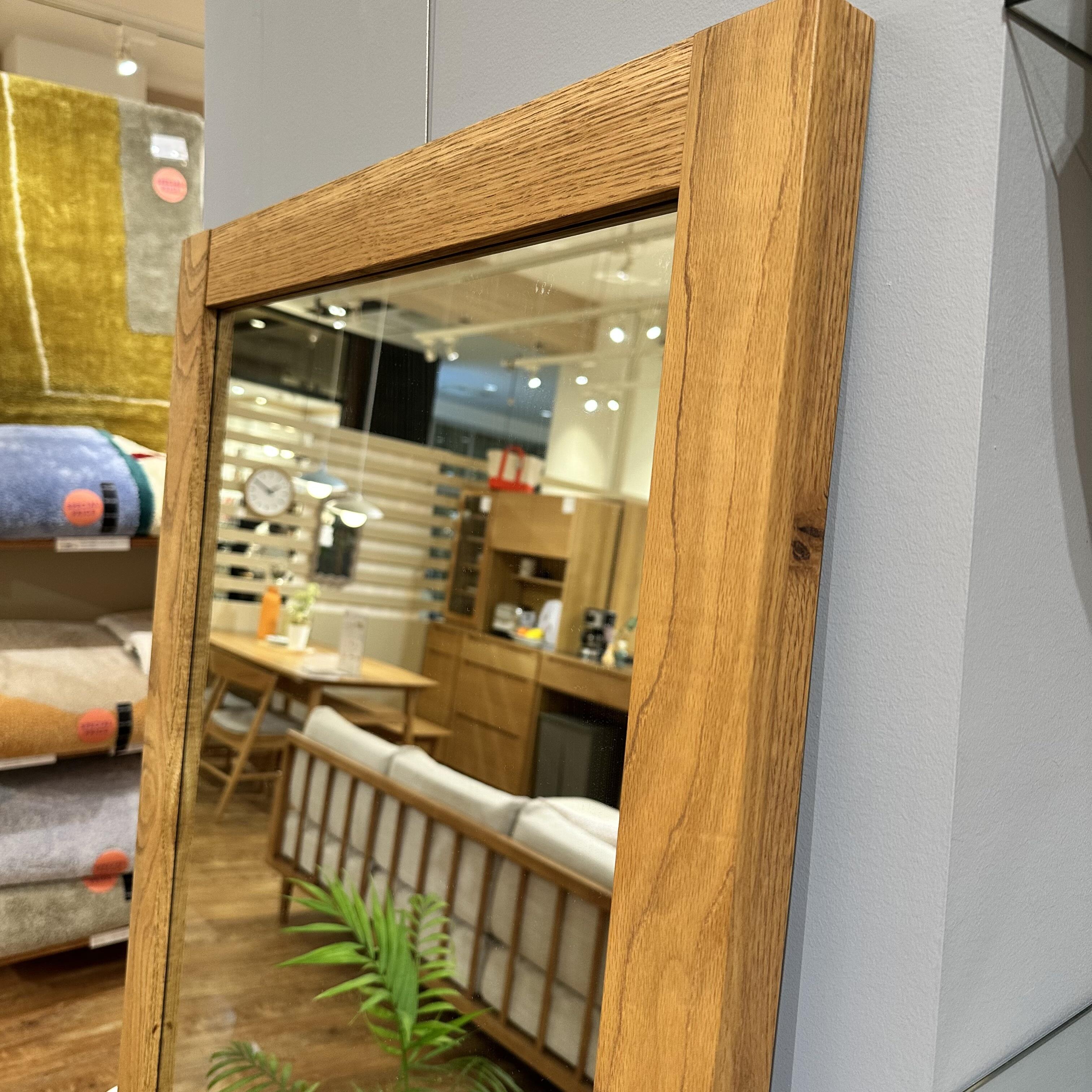 木目や節など、木の表情を生かしたカジュアルな印象のミラー。