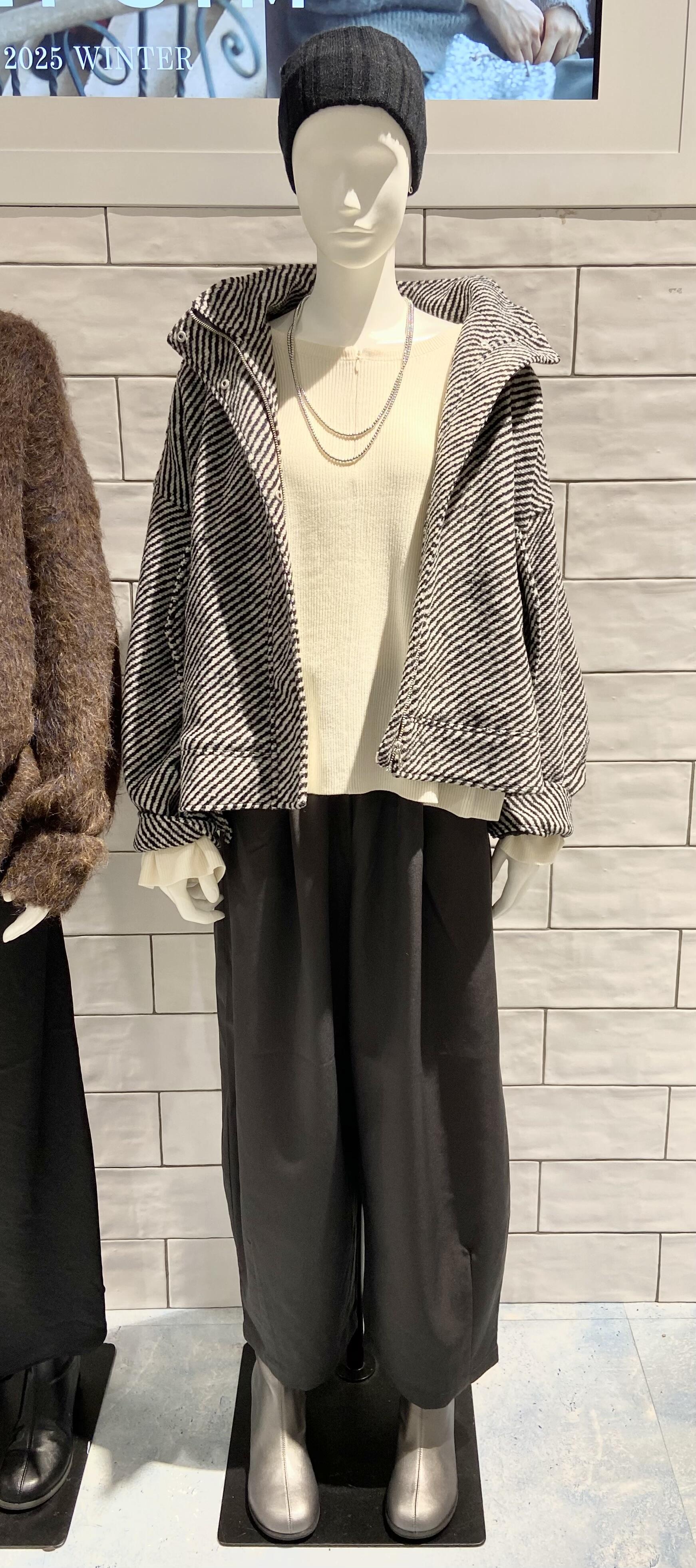 どちらも単色ではなく色が混ざっているので重たい印象にならず着ていただけます♪