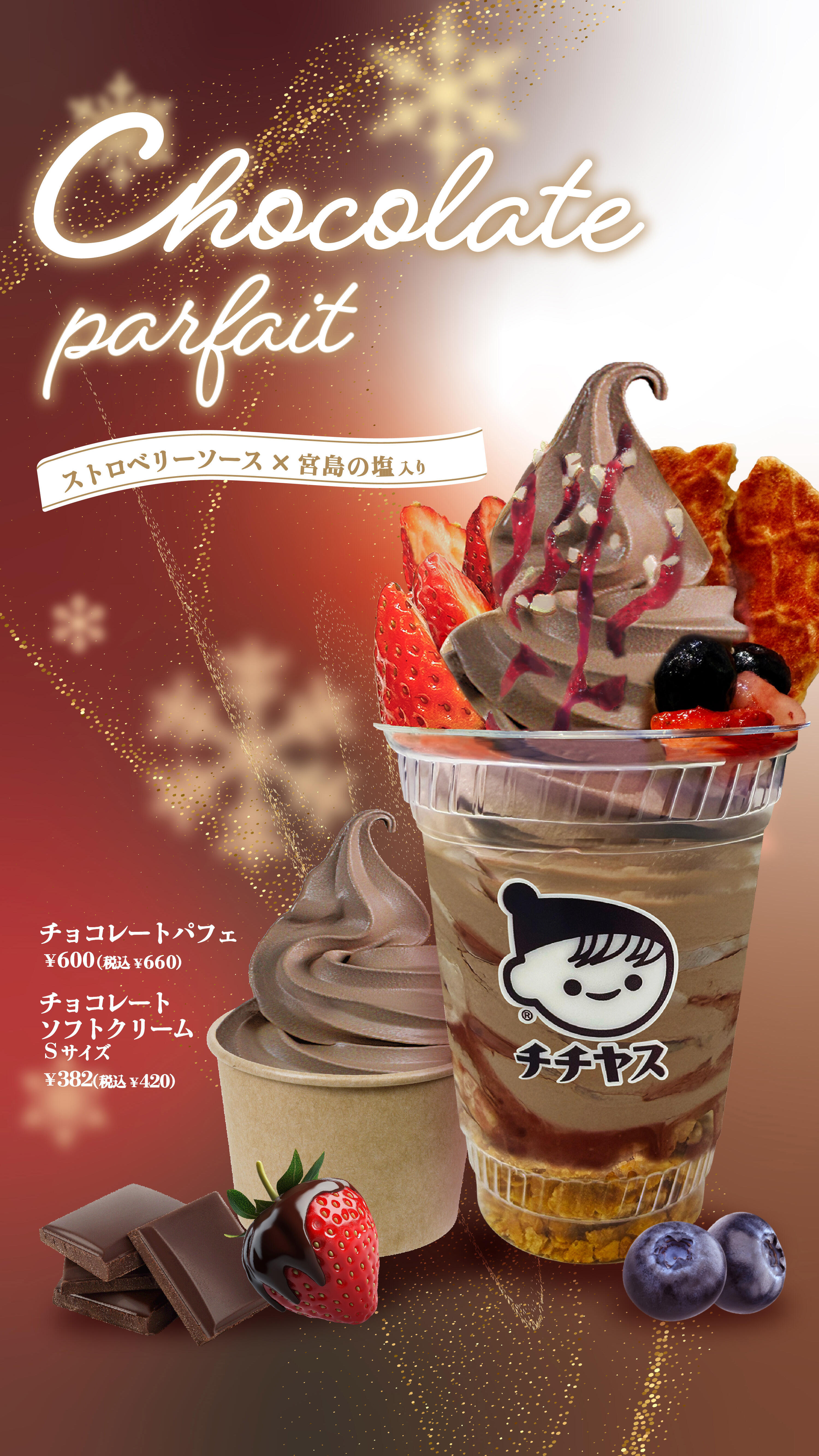 4日木曜日から人気の「チョコソフト」、「チョコパフェ」を発売。