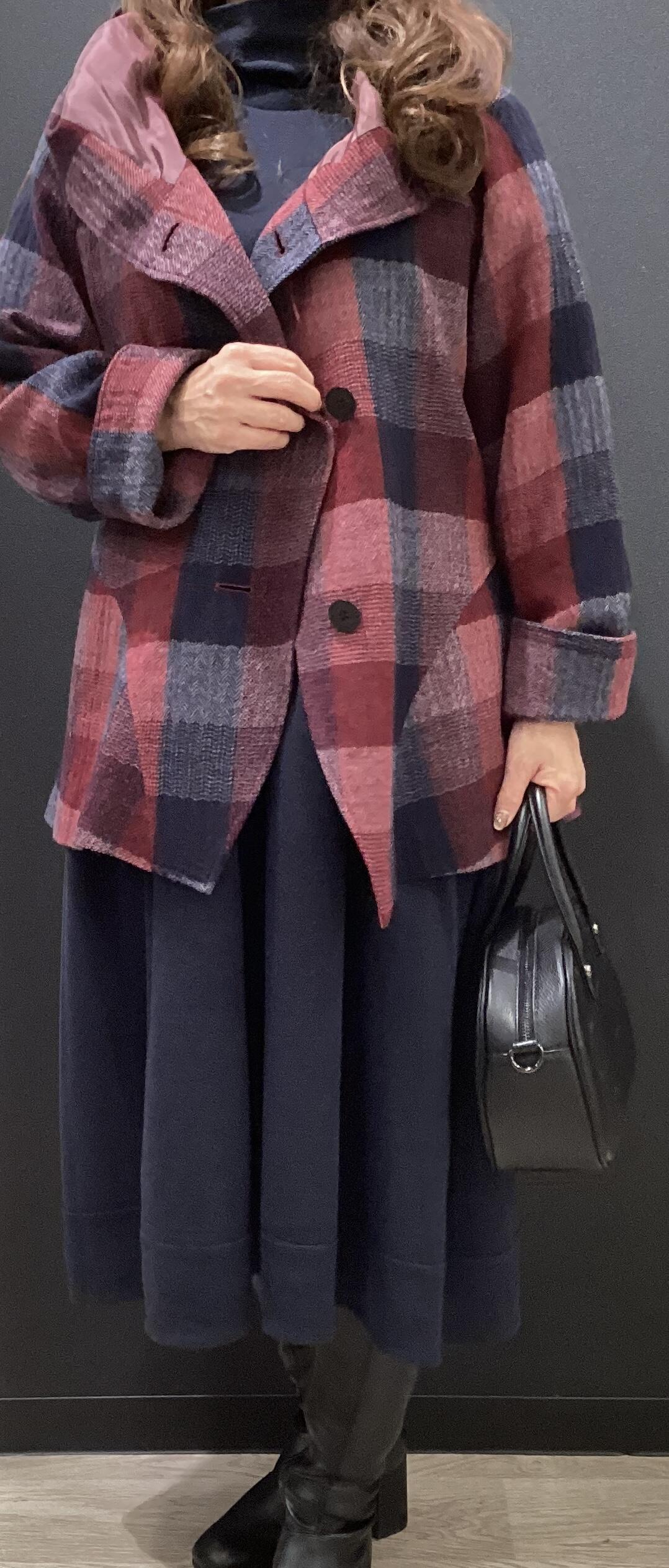 ヒップが少し隠れる丈で、スカートにもパンツにも合います♪