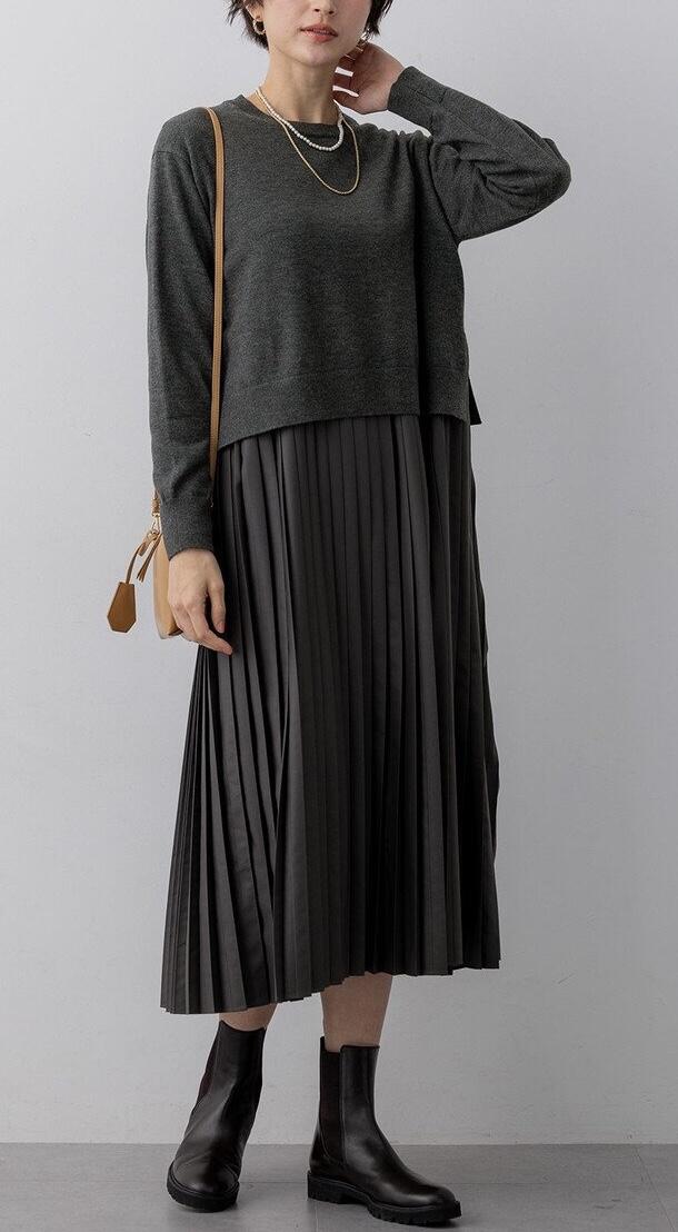 長袖ニットと、長袖カットソーに布帛スカートがドッキングしたデザインのワンピースがセットになったアイテム。