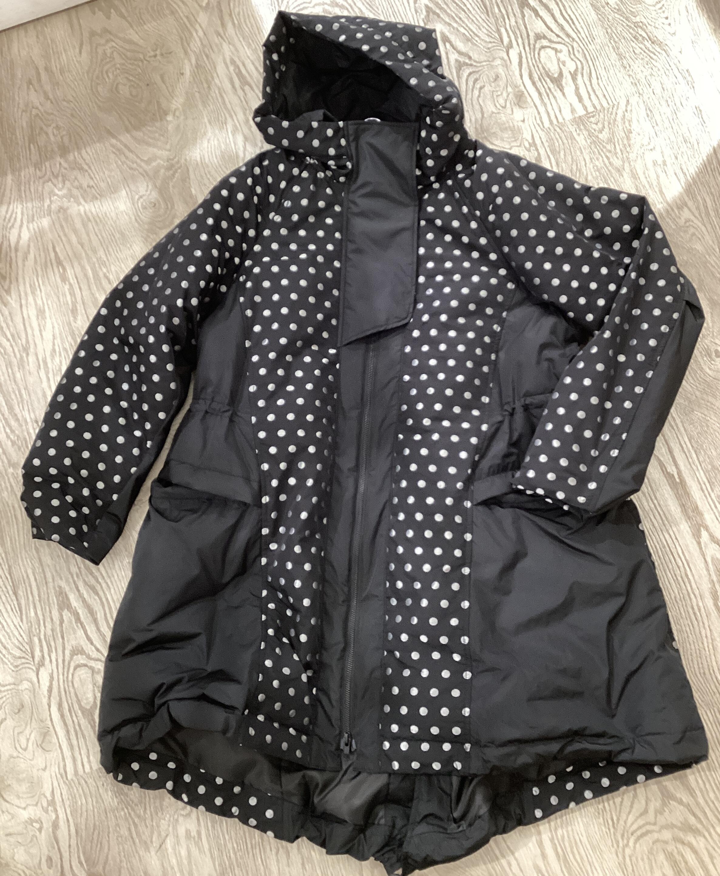 ドット柄のダウンコート。