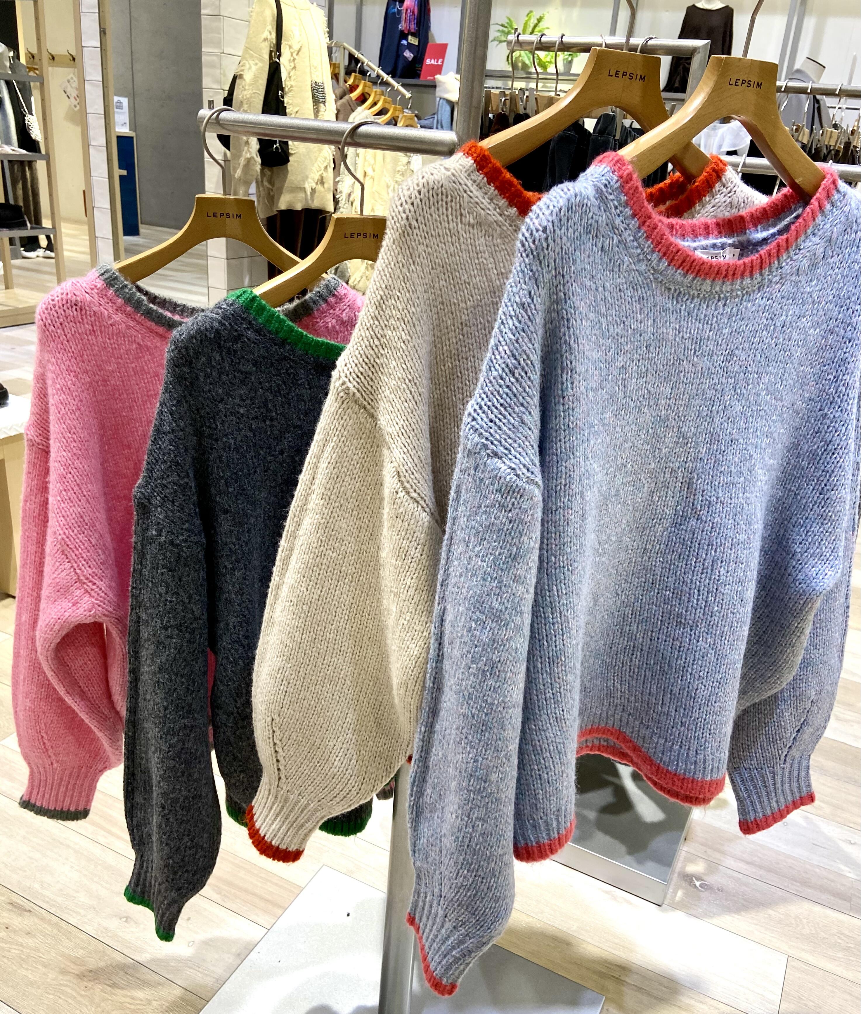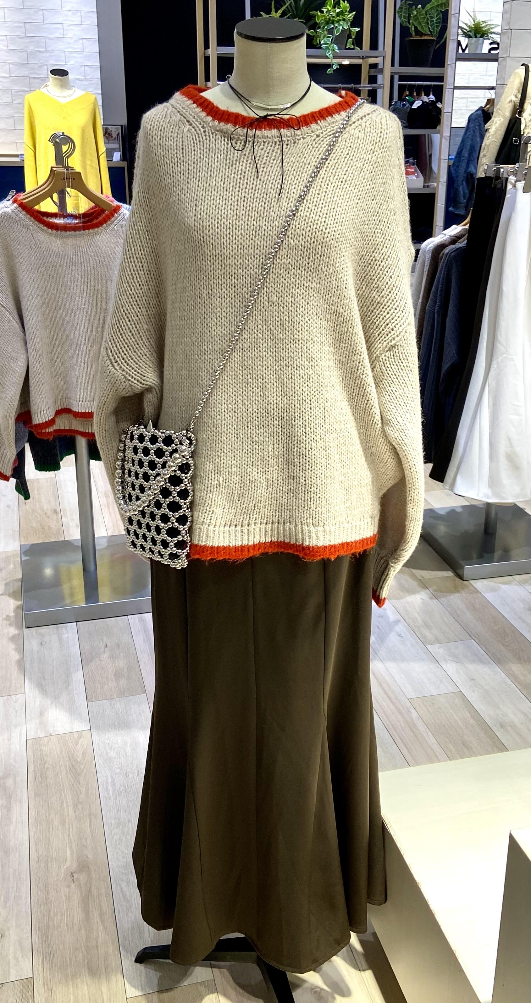 いつもなら派手に感じるカラーものもこのニットなら取り入れていただきやすいですよ♪