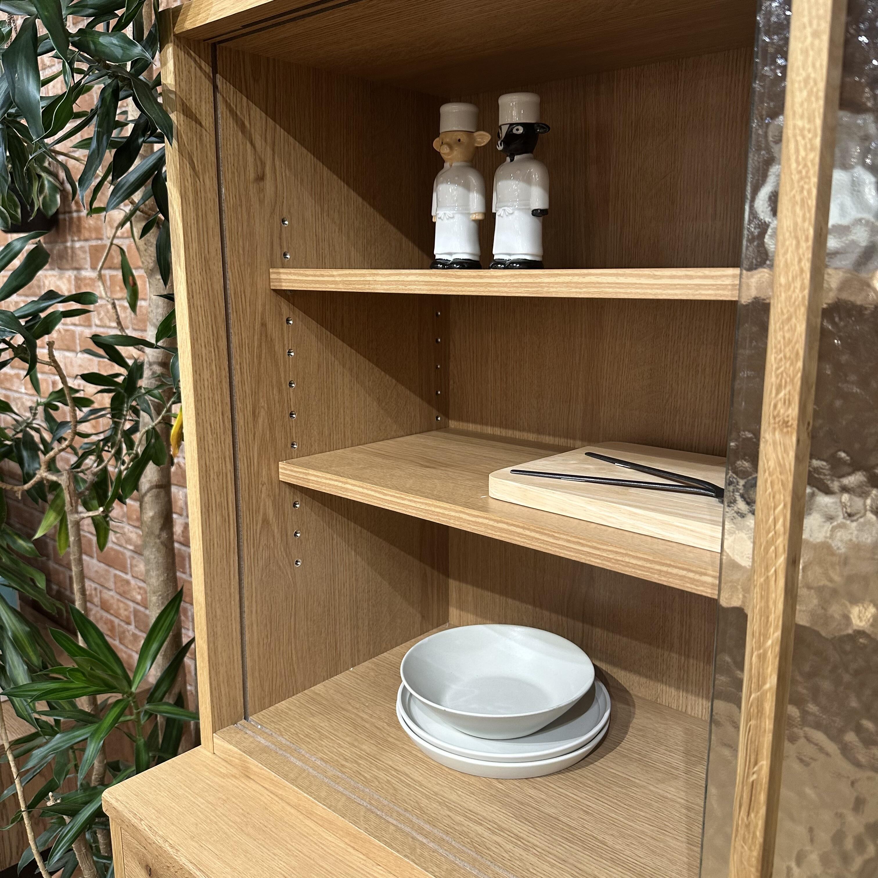 節や木目を生かしたオーク材の素材感に、程よく抜け感のあるテクスチャーガラスで優しい雰囲気の商品です。