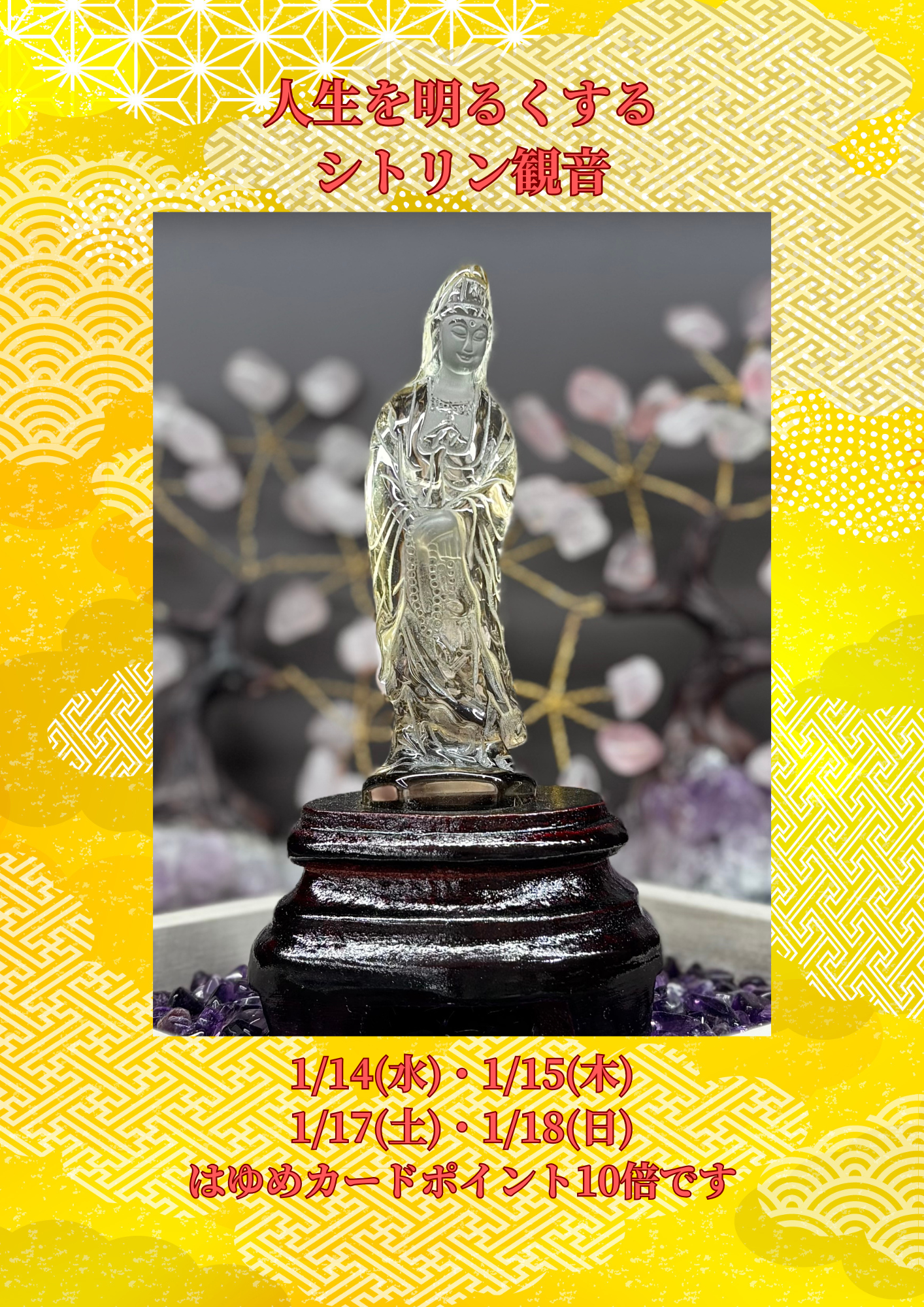 この先の人生を豊かにするシトリン観音を是非1度ご覧になってはいかがでしょうか?