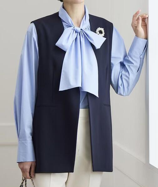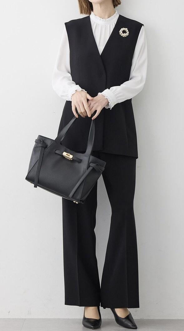 セットアップで着用すると、スタイリッシュな印象に、ブローチなどを足していただくとより華やかな雰囲気に、と様々なスタイリングの幅を楽しんでいただけます。