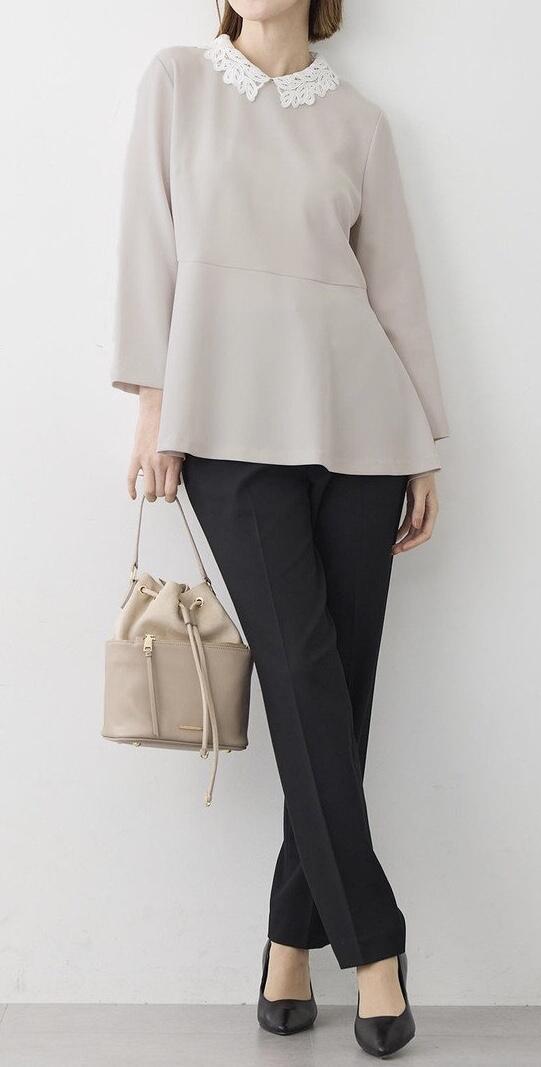 【セットアップ対応/洗える】トリアセダブルジョーゼット2WAYレース襟ペプラムブラウス