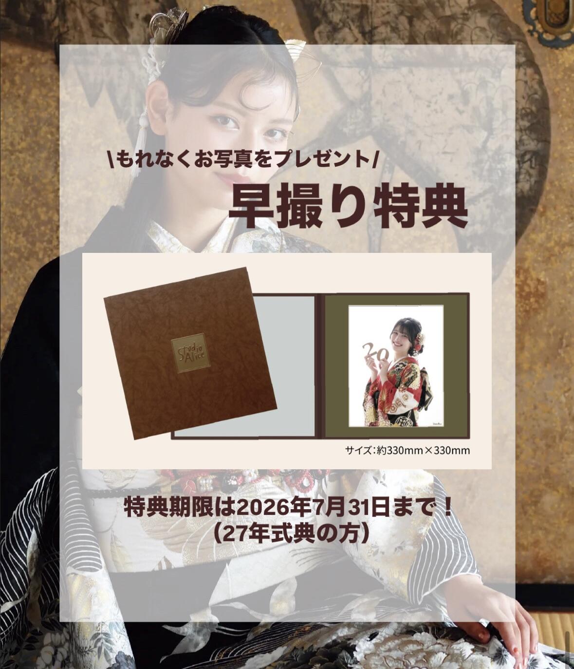 ※28年式典の方の前撮りは2027年度になります。特典期限は、2027年7月31日(土)まで