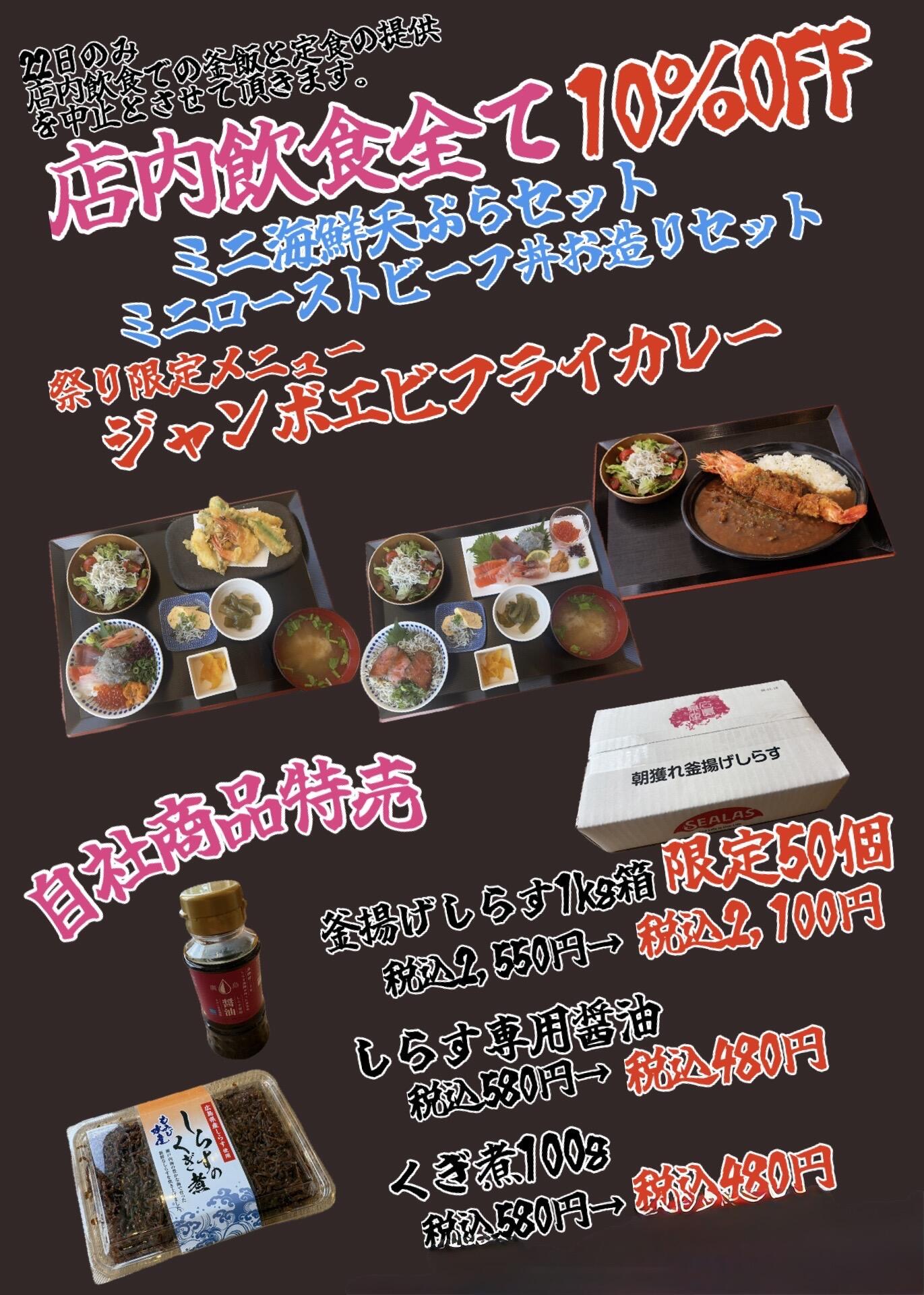 ・釜揚げしらす1kg箱 数量限定50箱!!
