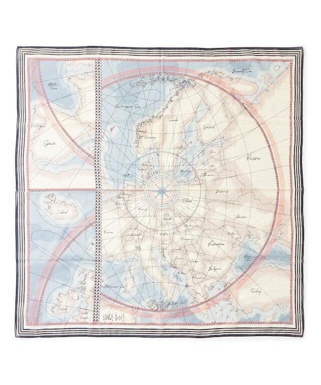 広大な世界地図をモチーフにした、23区オリジナルのワールドマップ柄が描かれた大判ストールです。