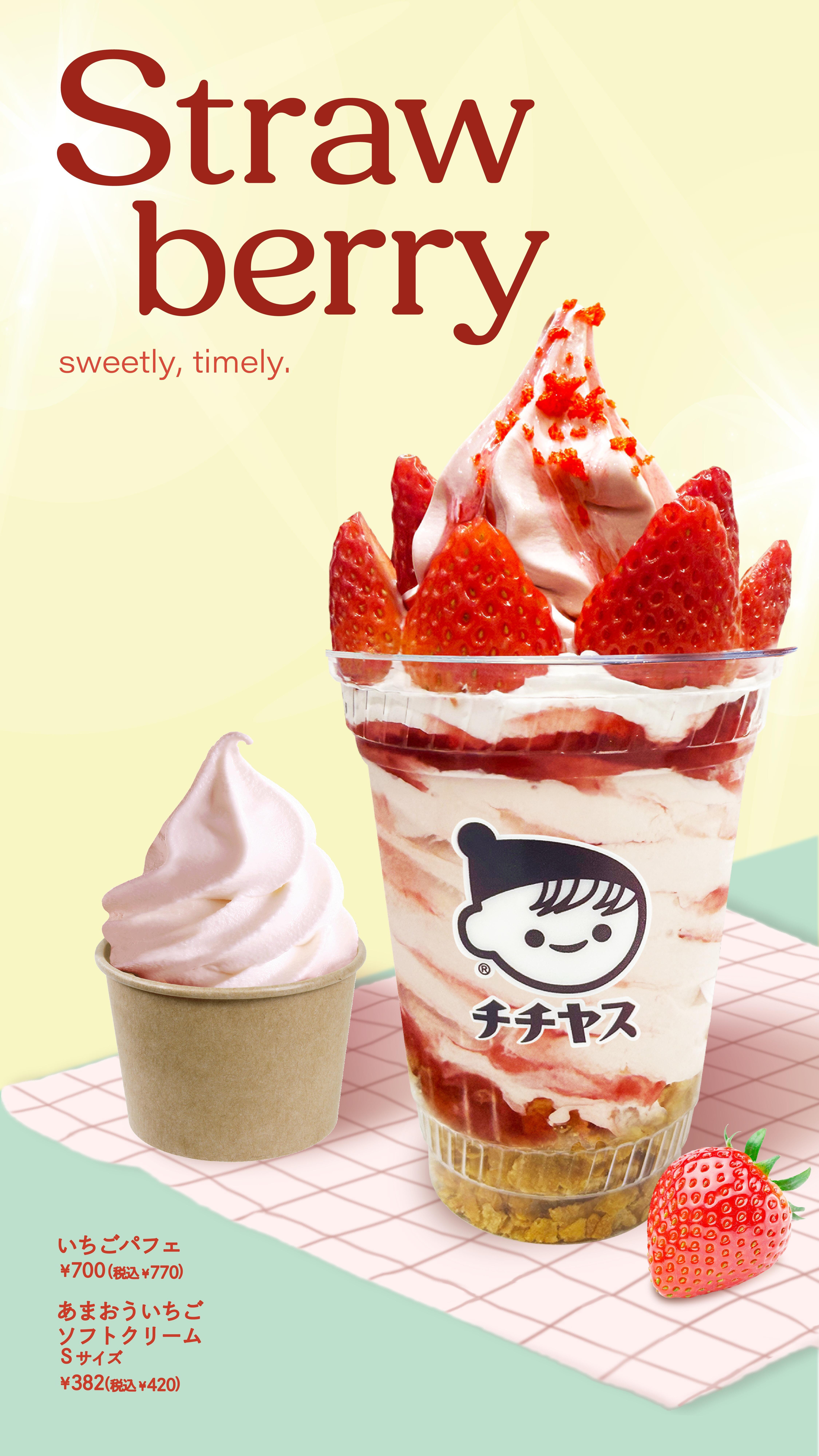 甘みが強い”いちごソフトクリーム”に、いちごをそのままたっぷりと使用し、