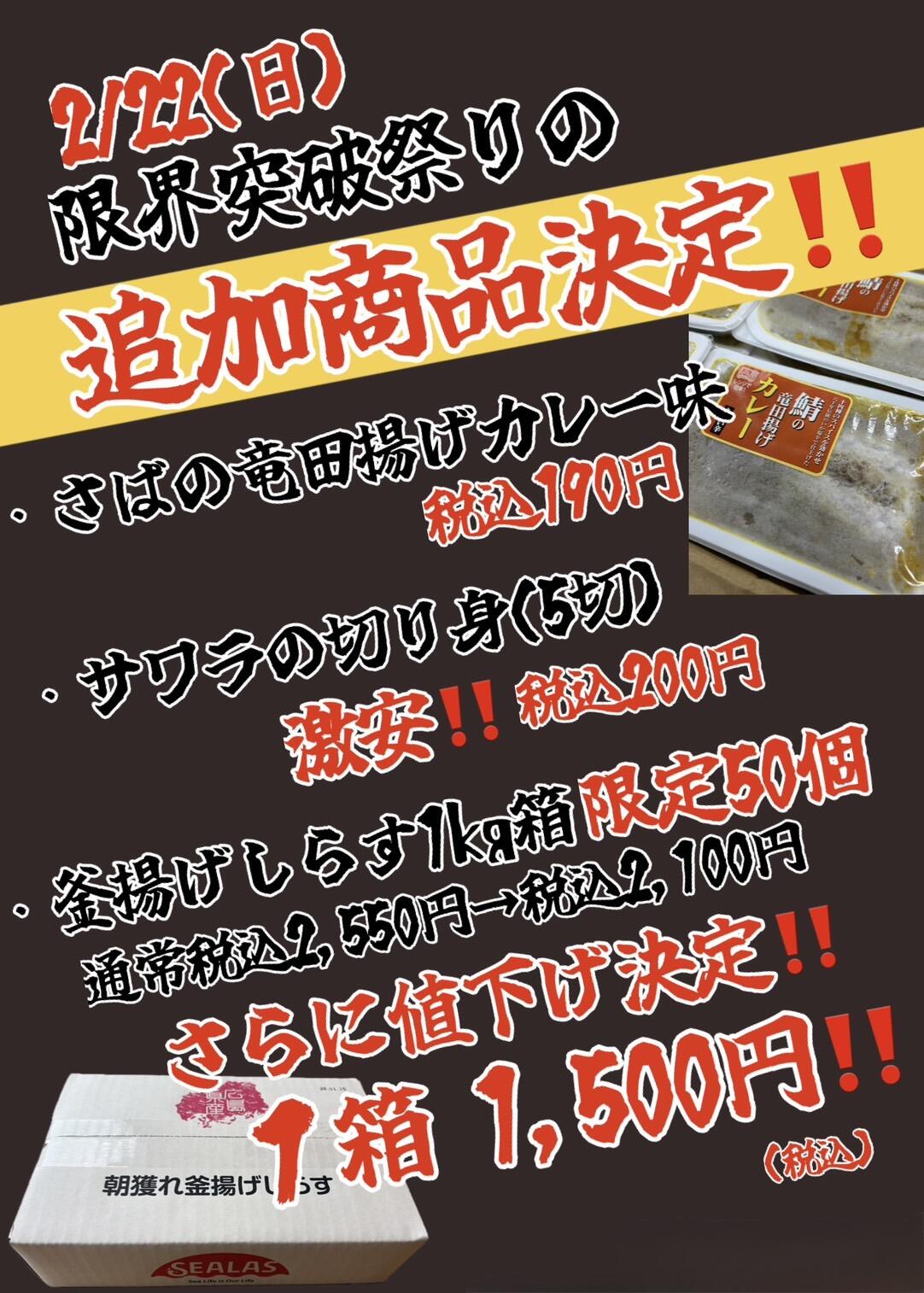 冷凍釜揚げしらす1kg箱 通常税込2,550円→2,100円(税込)を