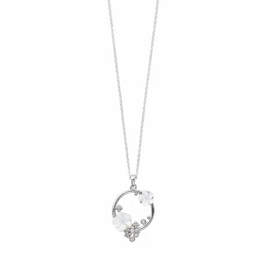 シェルでできた可愛らしい小花付のサークルモチーフネックレスです。