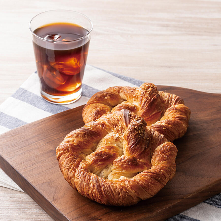 プレッツェルの形をしたゴマ風味とほどよい塩味のクロワッサンです。