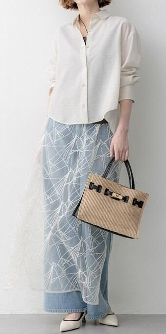 身幅やヒップ周りには程よくゆとりを持たせているため、シンプルなTシャツやデニムスタイルの上にさらりと重ねるだけで、ぐっと洗練された印象に。