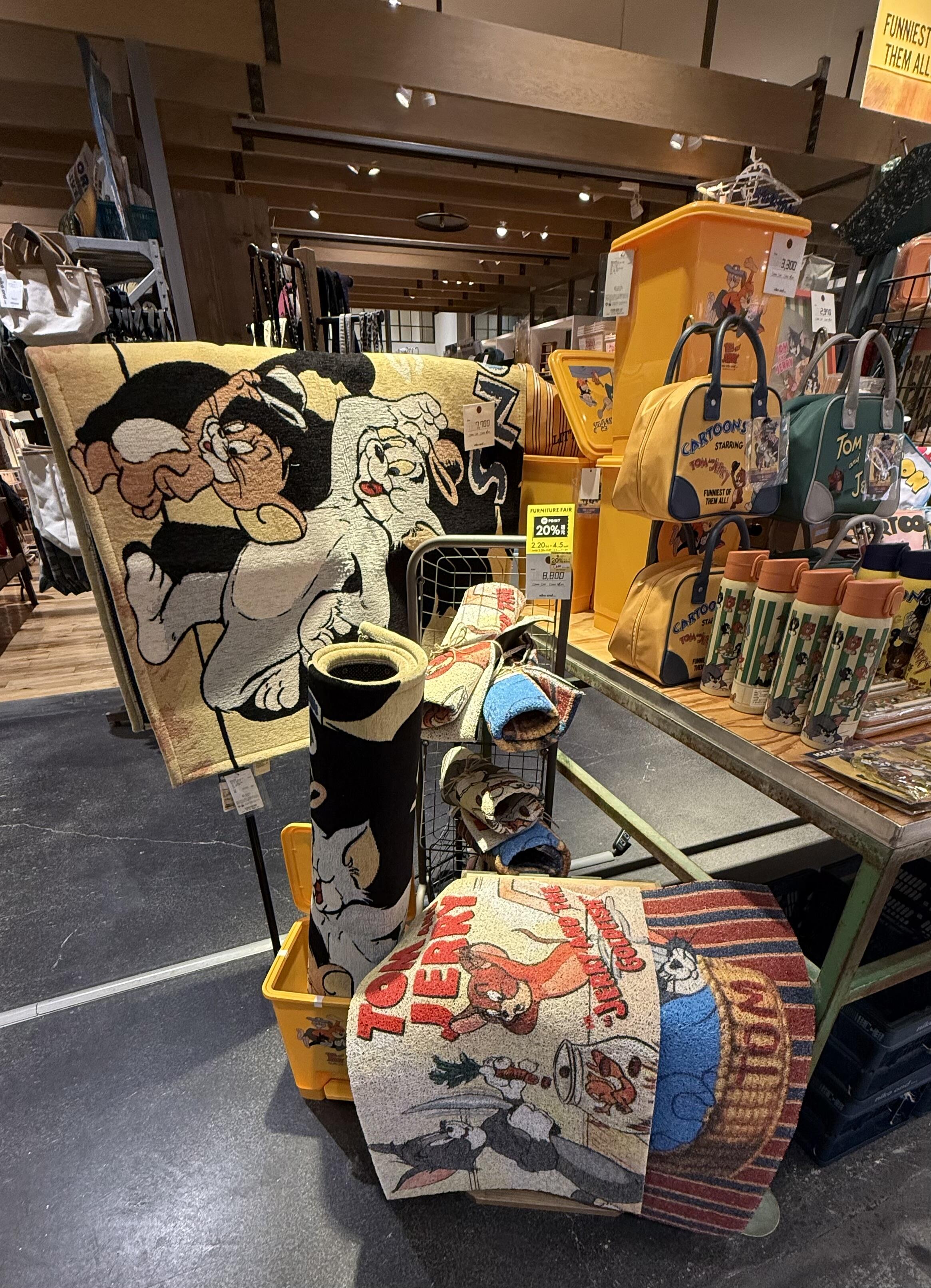 帽子を振って挨拶するトムとジェリーなど、名作のワンシーンを緻密な織りで描き出したniko and ...らしいこだわりの逸品。