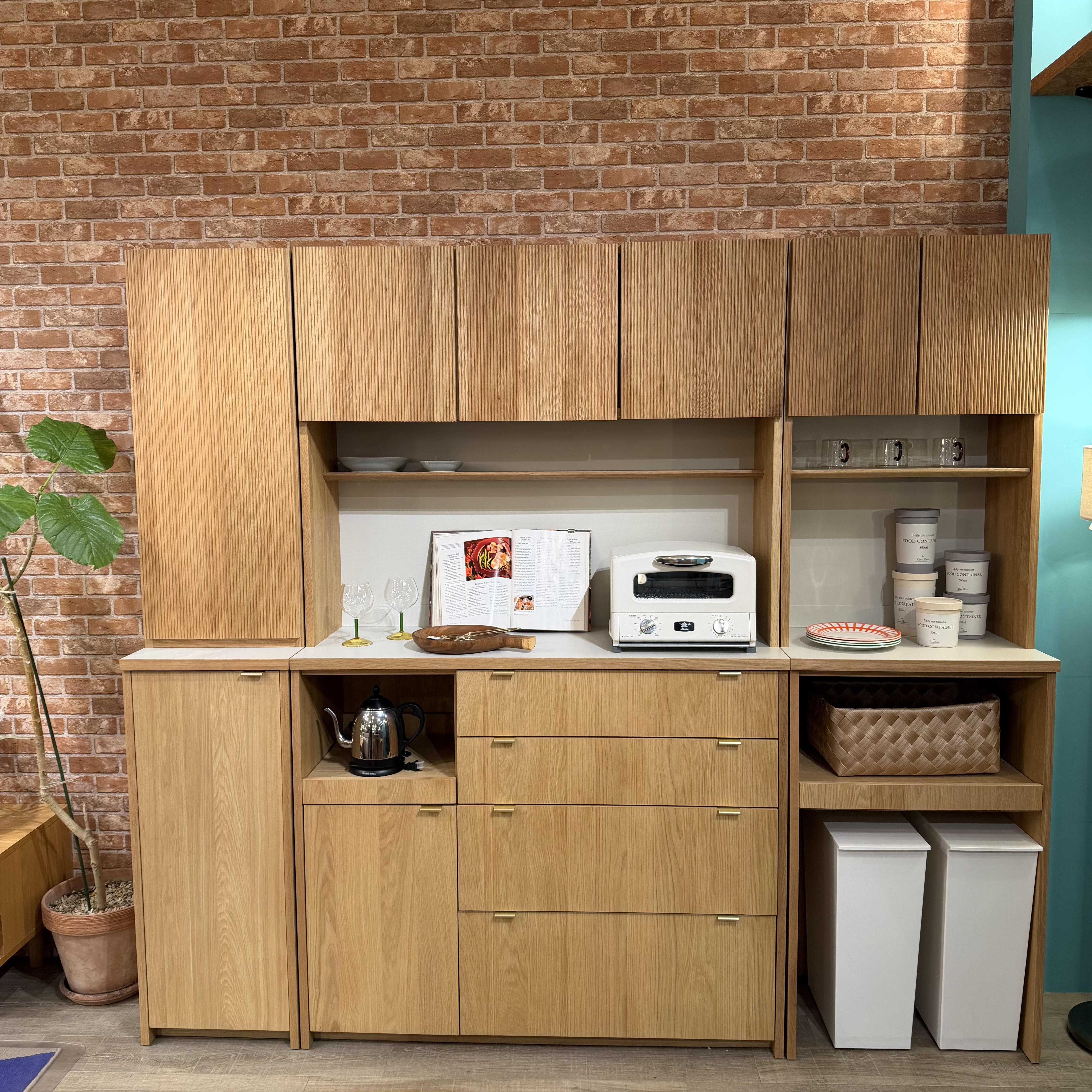 上台のリブ扉や取手のデザインが目を引くBASKAキッチンボードをご紹介致します!