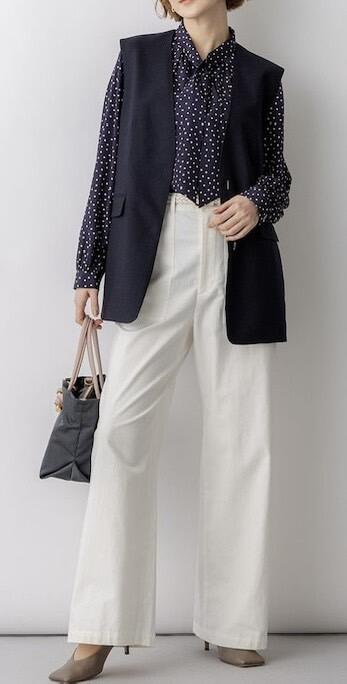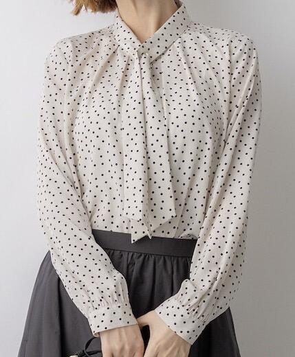 洗練されたドット柄で魅せる、大人の華やぎブラウス