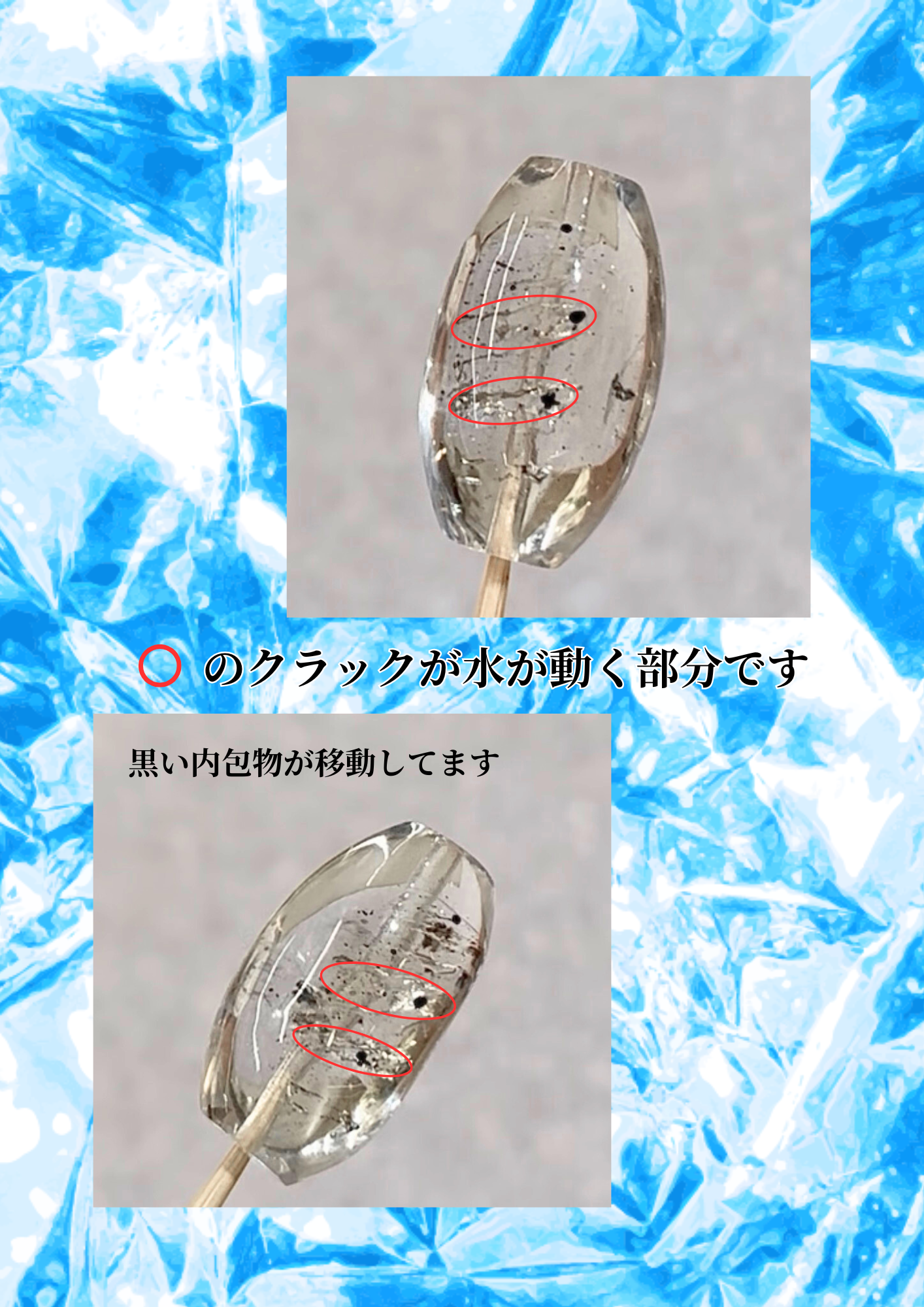 高い透明度・水と一緒に取り込まれた内包物が分かりやすく動く高品質な水入り水晶が入荷しました。
