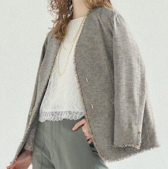 シンプルながらもフリンジ使いがアクセントとなり、洗練された印象を与えます。
