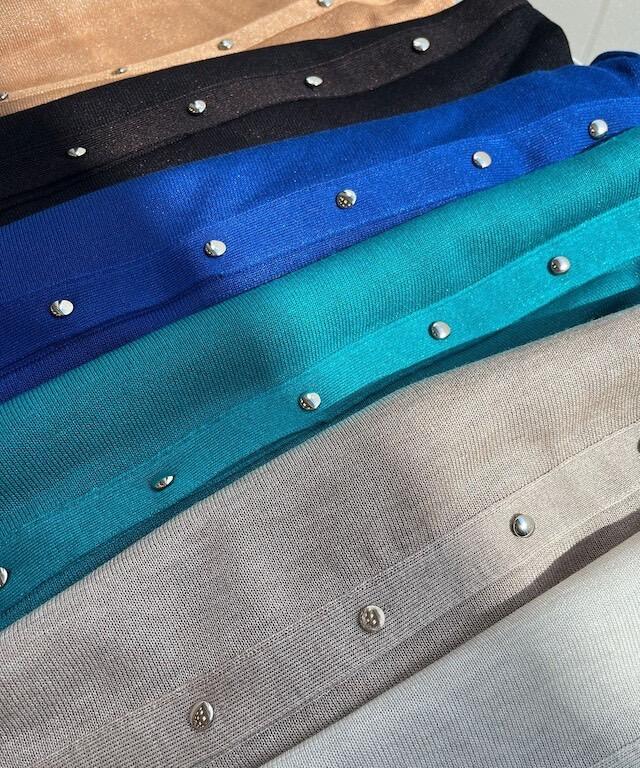 アイボリー・ベージュ・キャメル・ダークブラウン・ピーコック・ブルーの6色展開