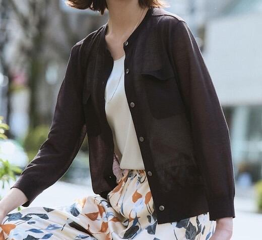 一枚着としても品よく決まる、大人のシアーニットカーディガン