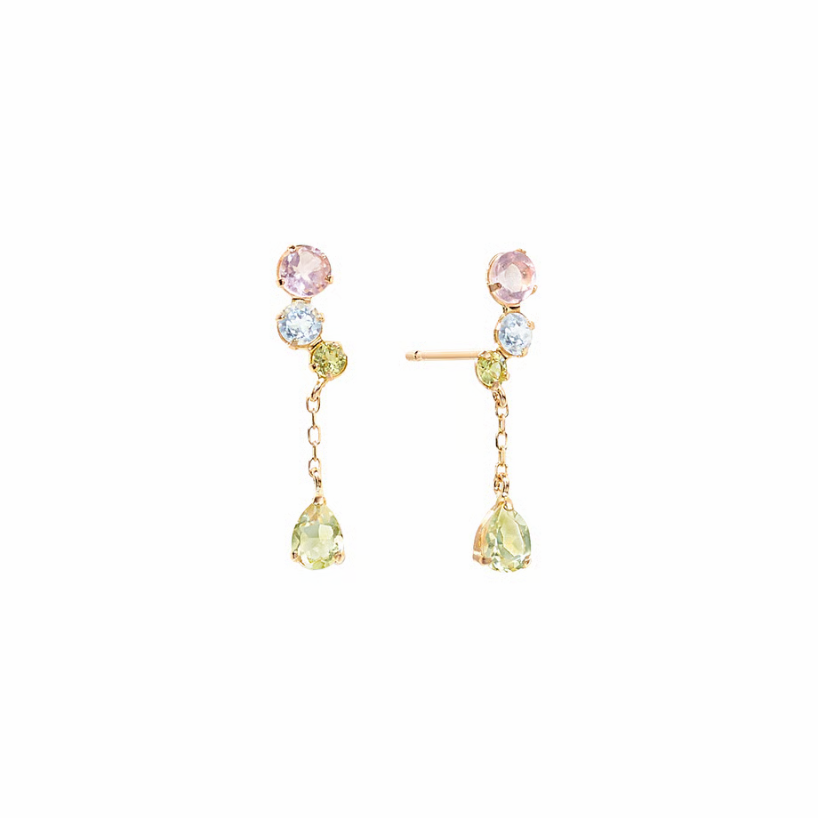 10金イエローゴールドレモンクォーツ/アクアマリン/ペリドット/ローズクォーツ ピアス