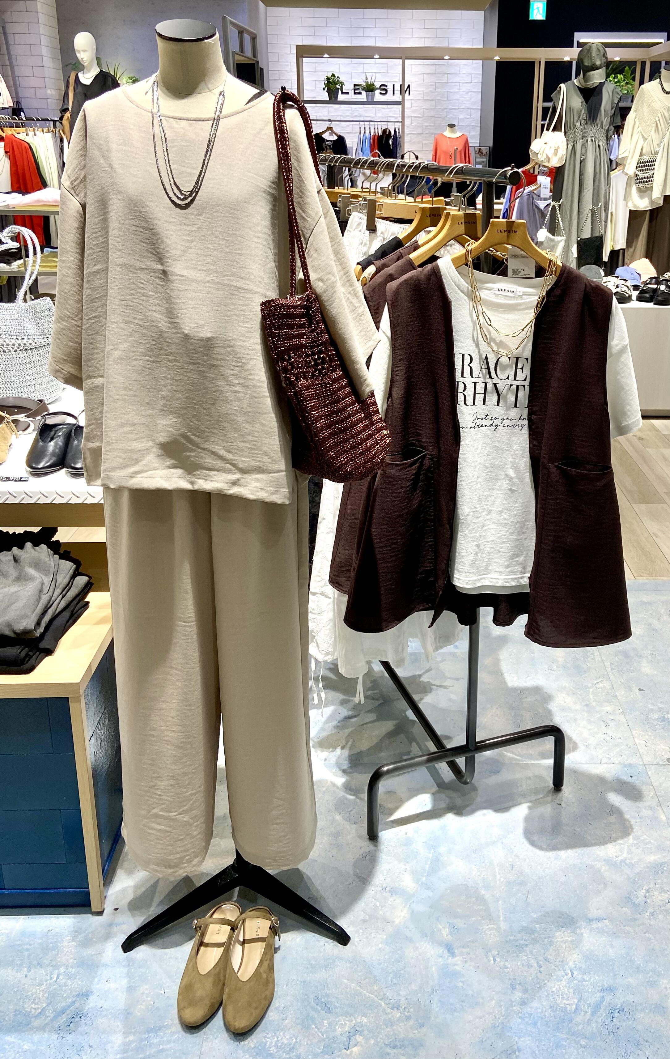 ポリエステル100%でありながらリネン風のナチュラルな素材感がとても夏らしいアイテムです!